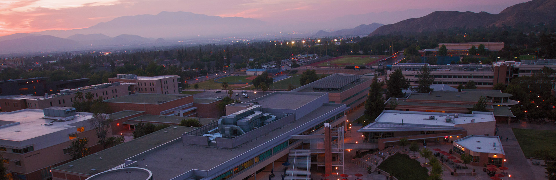 Aerial view of UCR at dusk